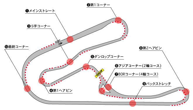 あんな狭いとこ&コーナー数多し・路面状況(砂があったり荒れてたり)悪いし、上まで気力体力持つライダーならって条件付きか?(+ドライ路面限定)