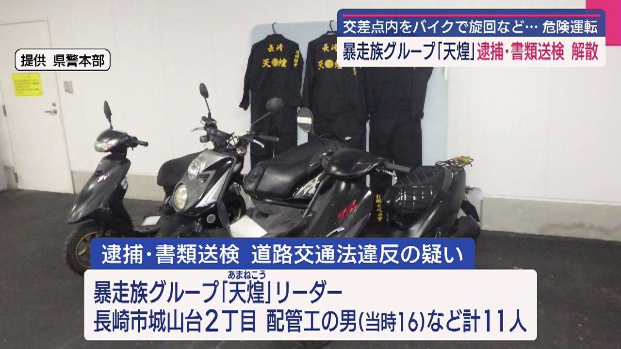 道路交通法違反の疑いで逮捕・書類送検されたのは暴走族グループ「天煌(あまねこう)」のリーダーで長崎市城山台2丁目に住む当時16歳の配管工の男とそのメンバーら合わせて11人です。