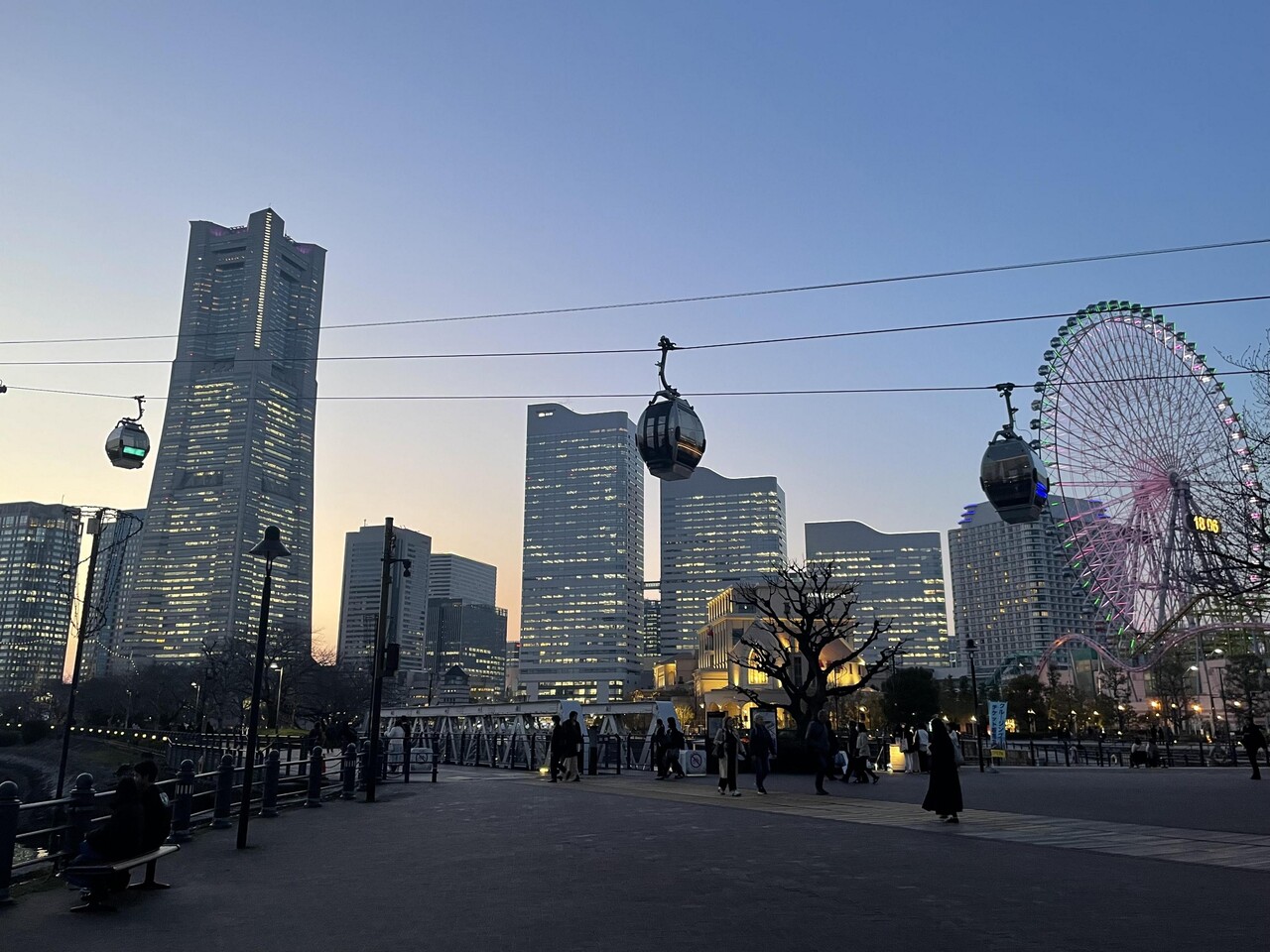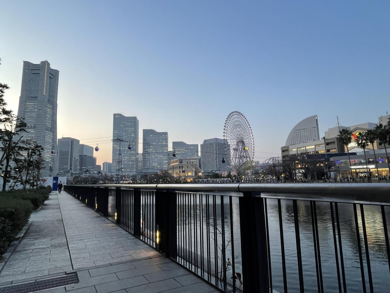 目の前に横浜ワールドポーターズやランドマークタワーなどがある