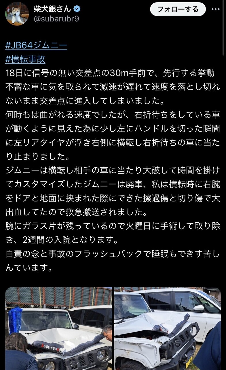 そらジムニーなら横転するわ
